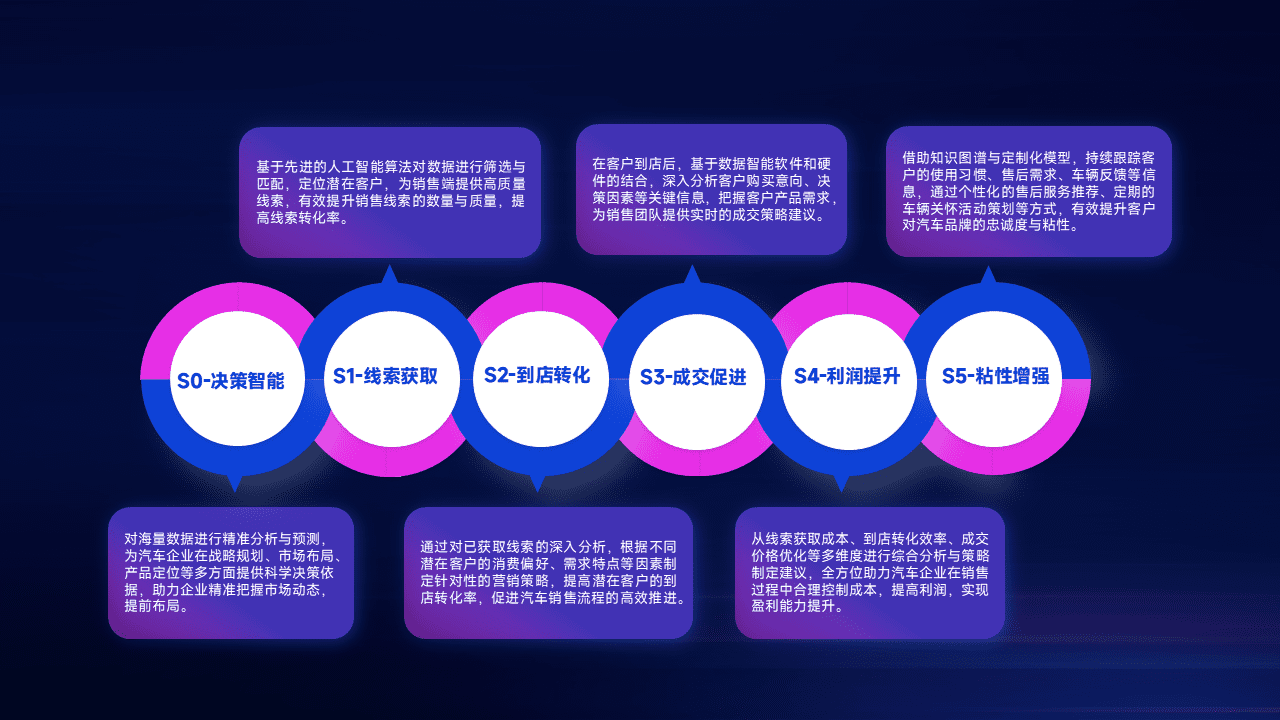 通过拓宽潜在客户来源、、、优化线索分配并提高到店转化率,,,,以增强销售效率。。同时,,,利用线索数据不断优化分析模型,,,,有效提升转化率,,,扩大营销影响力。。。。